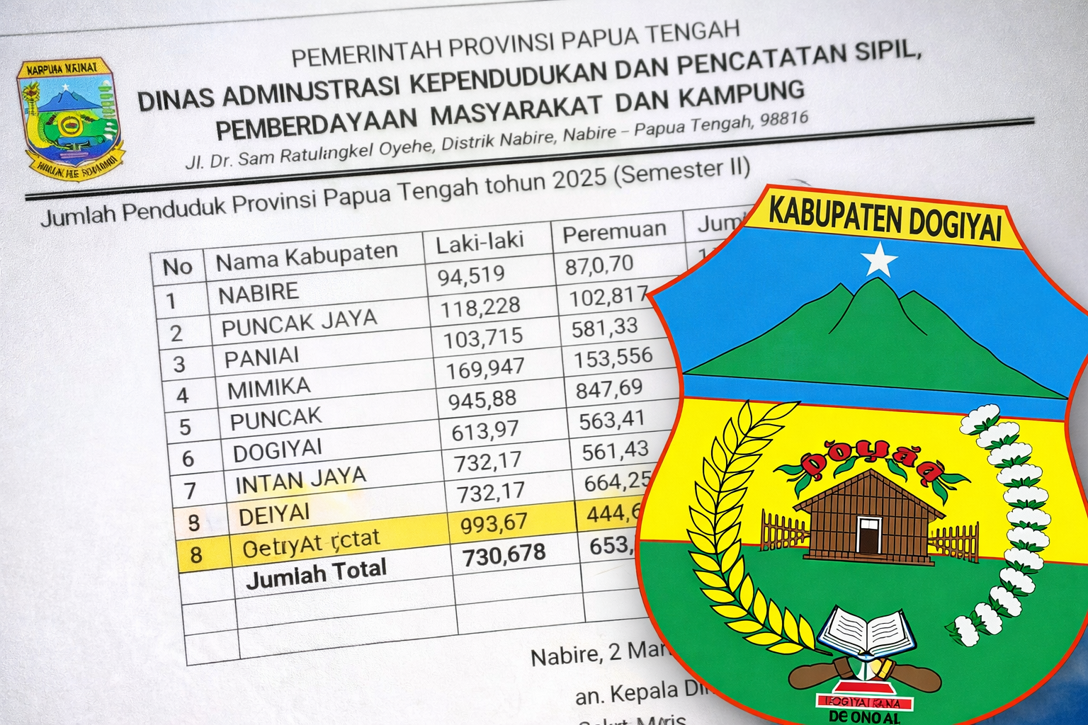 Dogiyai, April 2026 – Dinas Kependudukan dan Pencatatan Sipil (Dukcapil) Kabupaten Dogiyai terus memperkuat validasi dan pemanfaatan data kependudukan sebagai dasar utama dalam perencanaan pembangunan daerah. Langkah ini sejalan dengan rilis resmi Pemerintah Provinsi Papua Tengah melalui dinas terkait yang mencatat jumlah penduduk semester II tahun 2025.